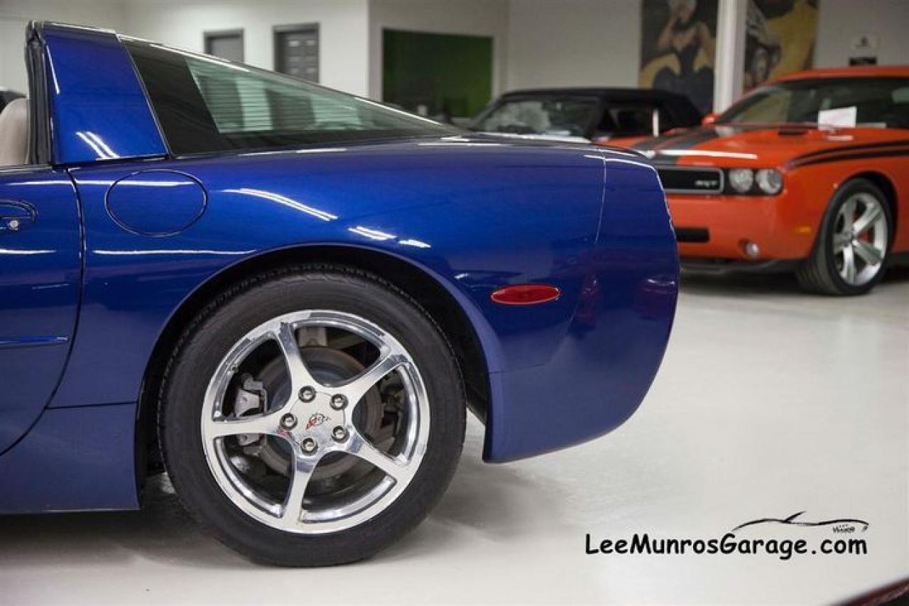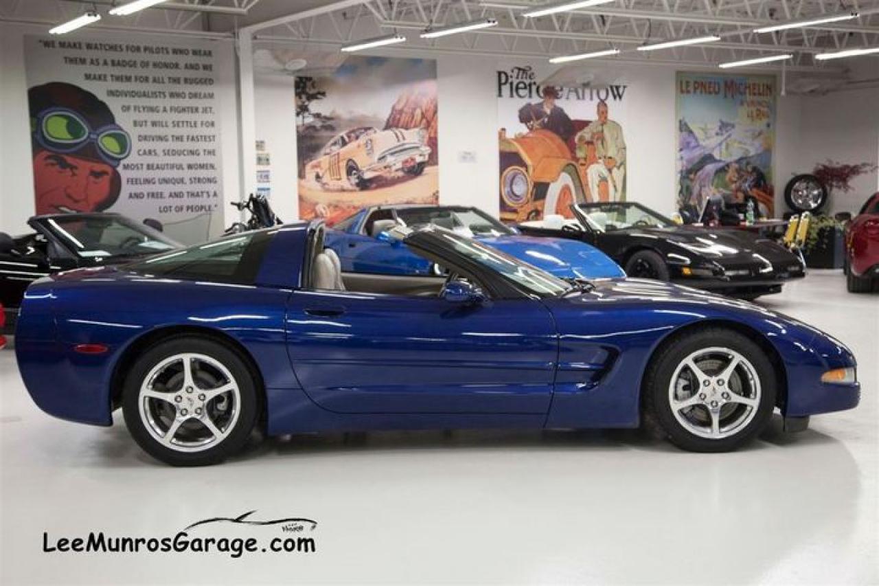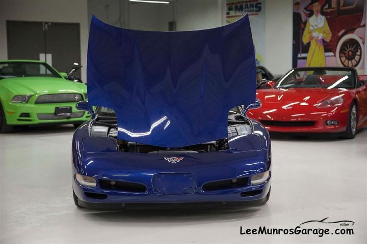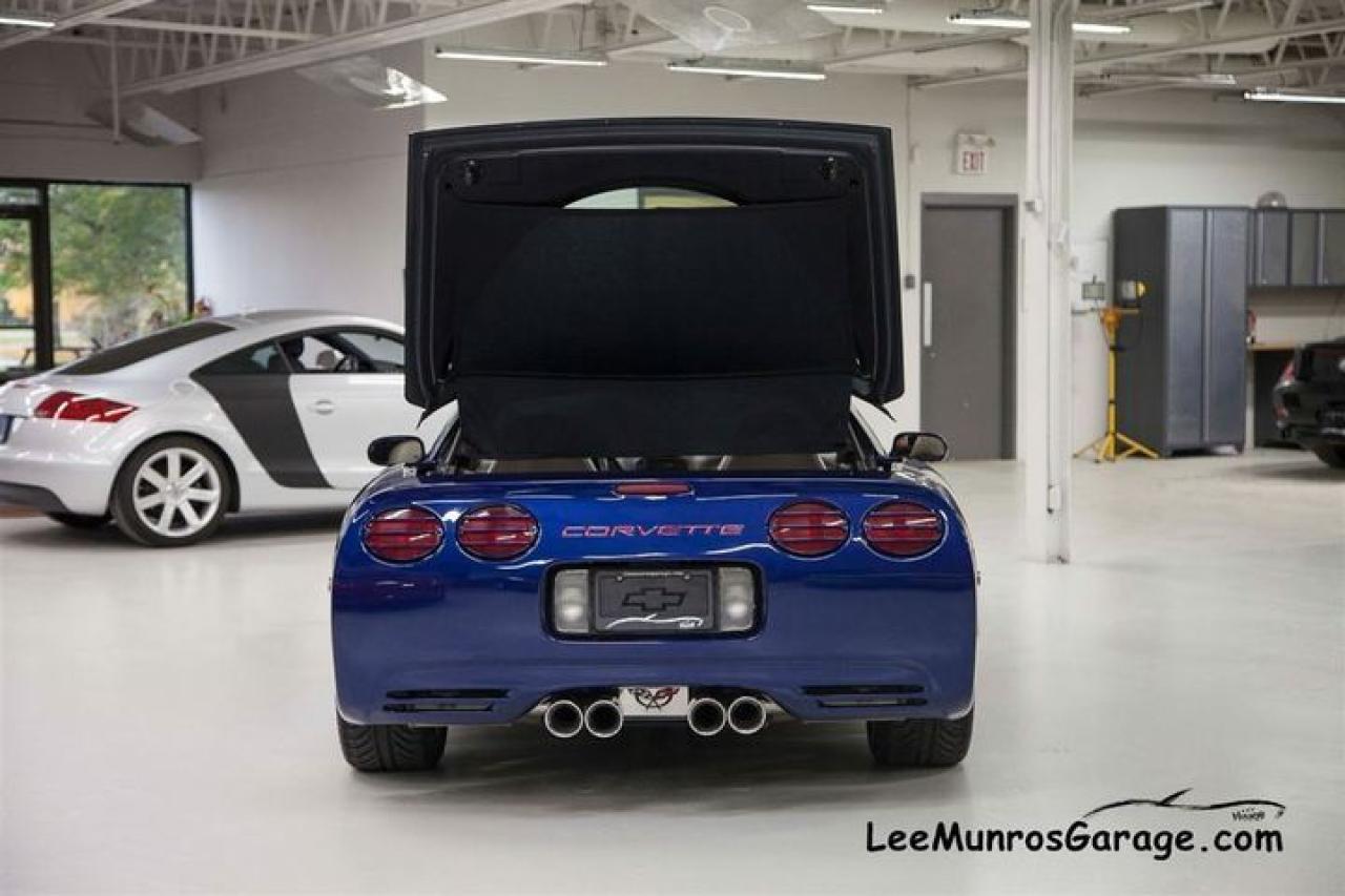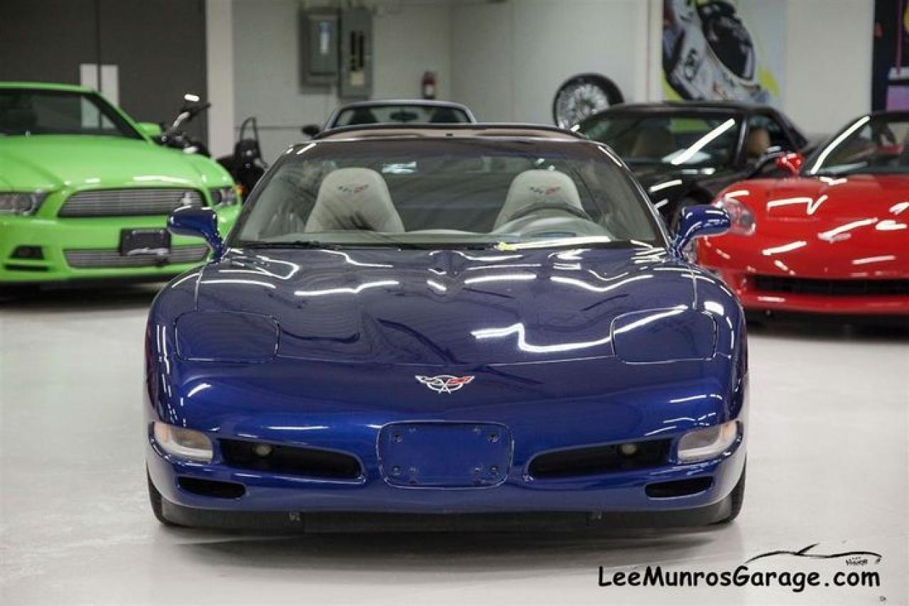 ALL LUXURY OPTIONS. CERTIFIED, E-TESTED AND READY TO GO. During the 2004 model year, a 24 Hours of Le Mans Commemorative Edition package, RPO Z15 was offered as an option, in celebration of the C5-R 1-2 in-class finishes at Le Mans. Most notable is a special Le Mans Blue paint, the same hue used on the two C5-R contenders that returned to Le Mans and narrowly missed a three-peat class win at the famed endurance race. The Commemorative package includes a special Shale-colored interior; the seats incorporate Corvette cross-flags embroidered into the headrests. Also part of the mix are exterior badges acknowledging Corvette's Le Mans success.This car new was $69,940.00 (MSRP). We ship across Canada, the US and Overseas.